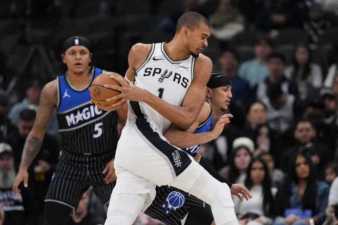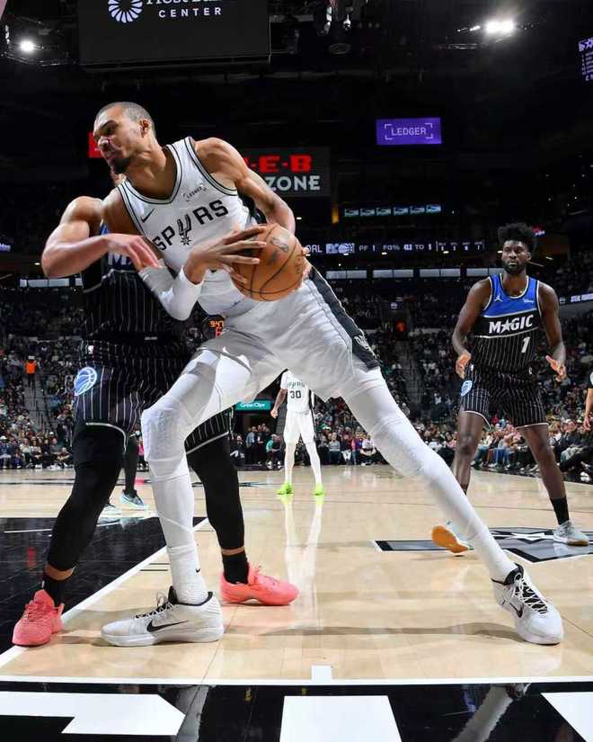 马刺双杀魔术升西部第二:文班25+8+4+5帽 完胜班凯罗19+10