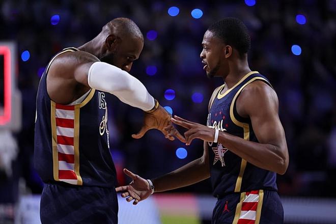 记者问道:你提到了和勒布朗-詹姆斯在一起的那个瞬间以及那张照片。在这样一个周末,这种时刻对你来说有什么样的意义?作为一名球员,能够在大家面前展现出那一面是一种什么样的感觉?对此,福克斯表示:那感觉真的太酷了。几乎我这一辈子,他都在打球。从我记事起,从我开始看球的时候,勒布朗就已经在这个联盟里了。对我来说,我在成长过程中其实并没有什么真正最喜欢的球员。我最喜欢的球员曾经是凯文-加内特(Kevin Garnett),在他退役之后,就真的没谁了。福克斯继续说道:你无法抹杀勒布朗为这项运动以及为这个世界所做的一切。对我来说,那是一张很酷的照片。尤其是看到我的孩子们,这种感觉真的太棒了。而且我有些朋友最喜欢的球员就是勒布朗。我认识很多人的偶像都是勒布朗。所以,那是一张非常棒的照片。