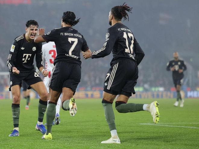 这是拜仁赛季第二次来到客场对阵科隆,去年10月份的德国杯南大王就是在莱茵体育场淘汰科隆晋级。这场比赛小将卡尔被留在了替补席上待命,格纳布里、迪亚斯、奥利塞、凯恩组成进攻线;基米希还是因伤缺席,格雷茨卡、帕夫洛维奇联袂双后腰;伊藤洋辉、塔、金玟哉、莱默尔搭档防线,门将仍然是诺伊尔。