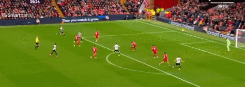 第43分钟,凯尔凯兹左路长传,埃基蒂克加速杀入禁区,外脚背射门打了对手一个措手不及,波普下地慢了半拍,皮球钻入死角。仅用2分钟,埃基蒂克梅开二度,利物浦2-1反超。