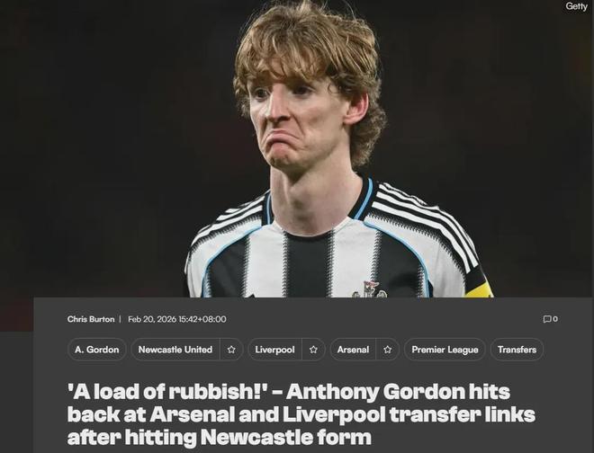 纽卡斯尔边锋戈登最近和阿森纳以及利物浦等豪门联系在了一起,但球员本人接受采访时否认了这个传闻。