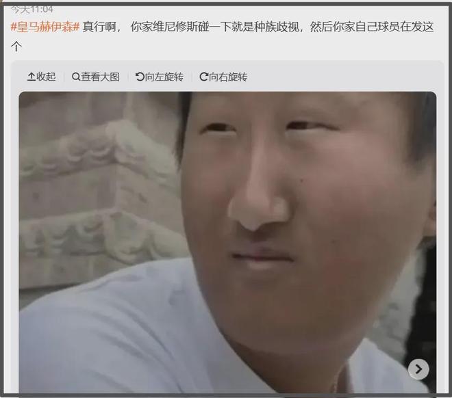 要知道就在不久前的欧冠附加赛上,现场出现了歧视黑人球员的事件,皇马俱乐部立马发布反歧视声明——敢情别人歧视他们球员不行,他们球员歧视中国人就可以?