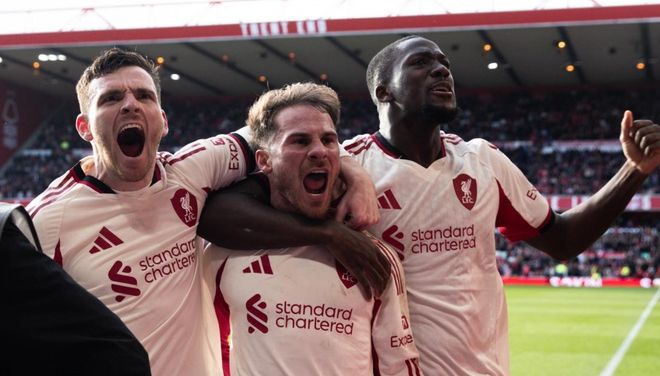 下半场易边再战。米伦科维奇的头球攻门稍稍偏出左侧立柱。第55分钟,琼斯的近距离射门被挡了出去。巴夸的远射偏出了球门。利物浦在第77分钟进行换人调整,恩古莫哈和基耶萨替补上场,换下萨拉赫和加克波。第86分钟,吉布斯-怀特的射门被挡出。随后,埃纳解围球击中麦卡利斯特身上弹进球门。但因为手球被吹掉。第97分钟,利物浦完成极限绝杀!麦卡利斯特门前抓住机会补射破门!真是神剧情!最终,利物浦1-0击败诺丁汉森林。