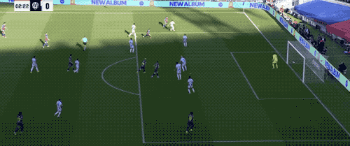第26分钟,坎塞洛传中,莱万和防守球员都没有碰到皮球,皮球击中立柱弹了出来。